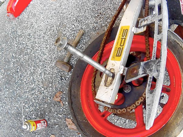 不動になった経緯ですが、リアタイヤのパンクを直そうとしたところ、アクスルシャフトが固着して外せず、そのままお蔵入りになってしまったそうです。