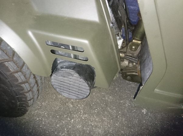 後方はステーでちょっと持ち上げて、タイヤとのクリアランスを確保しています。