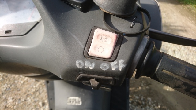 キルスイッチのことかと思ったら、ハザードスイッチをヘッドライトON‐OFFに変えてあり、その為の表示でした。暖機運転時のバッテリー保護対策でしょうか?