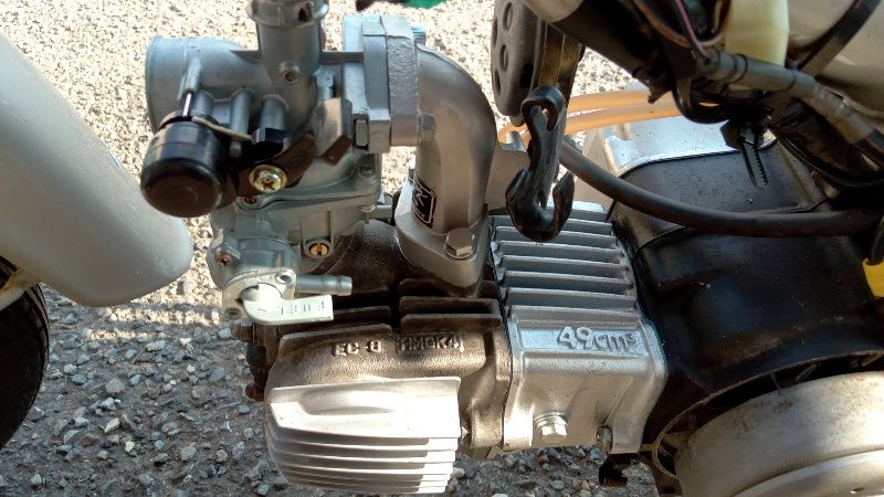 シリンダーヘッドは以前フリマにて100円で買ったやつ(笑) 売主によればインマニの削る向きを失敗したのでパワー出ないとのことでしたが、カブはキャブの向きが逆ですので試しに使ってみます!