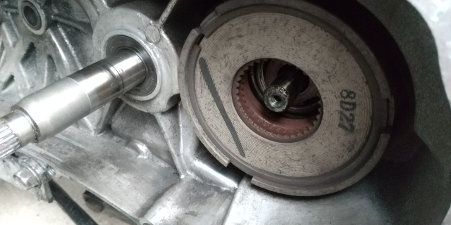 ケースを開けてみると、ある程度の汚れはあるものの、一度も開けてないのでは?と思うほど痛んでいません。デフクラッチのギアもしっかりしていますので数千キロ程度しか走っていない感じです。清掃とグリスアップをして、そのまま戻しました。試運転後、問題なければ消耗部品を交換予定です。