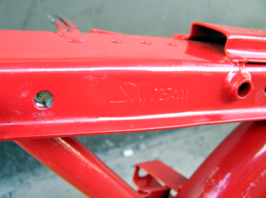 フレームナンバーは打刻ではなくプレートだったので、適当な場所にリベット留めしました。