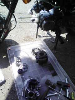 ちなみにエンジンを載せたままでバラす場合、フロントタイヤの空気を抜かないとヘッドやシリンダーは抜けません。