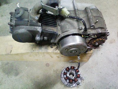 シャリーに載っていたカブエンジンのジェネレーター部分を交換しました。