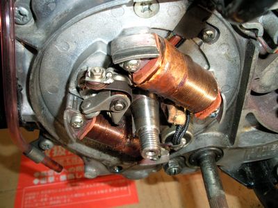 今回はコンタクトブレーカー(ポイント)をさわらず、配線だけを交換しました。