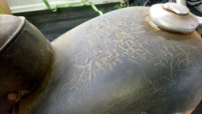 自慢のタンクも塗装が縮んでエライことになってます(笑)