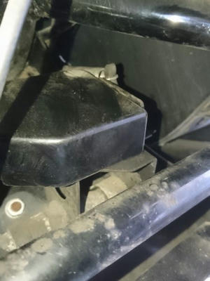 ある日の朝、フュージョンのパーキングブレーキが解除できなくなりました。 こうなったらフュージョンもただの置物です。 原因はパーキングロック用のピンの動きが悪くなり、戻らないんだとか。 とりあえず、上からCRCを吹いてみましたが全く効果なし。 先人の知恵を頼ると、フロント側からアクセスできるみたいです。 見えました!でも黒いカバーがされています。CRC効果ないはずです(笑) カバーを外し、ピンにグリスをたっぷり塗りました。(中央のバネがある部分) あとは元に戻すだけ。嘘みたいにレバー操作が軽くなりました。