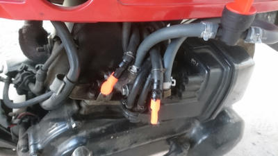 オートチョークは取り外さず、抜いたホースは2次エア防止で栓をしています。