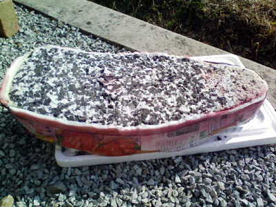 表皮を貼るとこんな感じです。↓ スポンジと表皮の間に梱包用のスポンジシートを巻いているのですが、ベース作りの段階で角を丸く面取りしていなかったので、ボコボコが目立ちます。