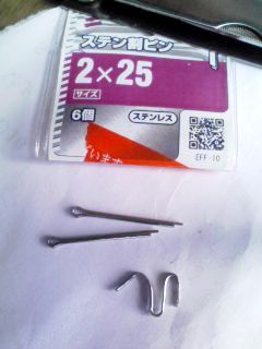 割りピンは一旦伸ばしてしまい、スロットルバルブに合わせて折り曲げていきます。サイズ的には気持ち小さめの方が、後々修正しやすいです。